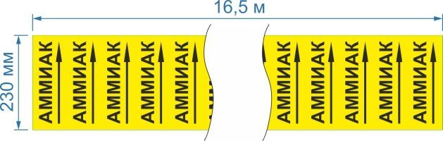 Опознавательная маркировочная лента желтая с черной надписью Аммиак и стрелкой 230мм x 16,5м