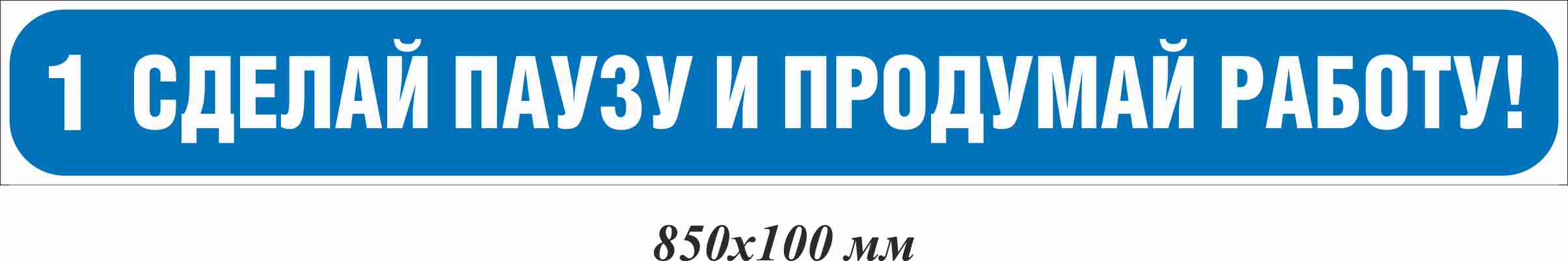 Наклейка информационная на ступени 2, Сделай паузу и продумай работу! 850х100 мм, материал пленка ПВХ самоклеящаяся, форма прямоугольная края закругленные, цвет белый/синийАрт. IT-850x100-PS1