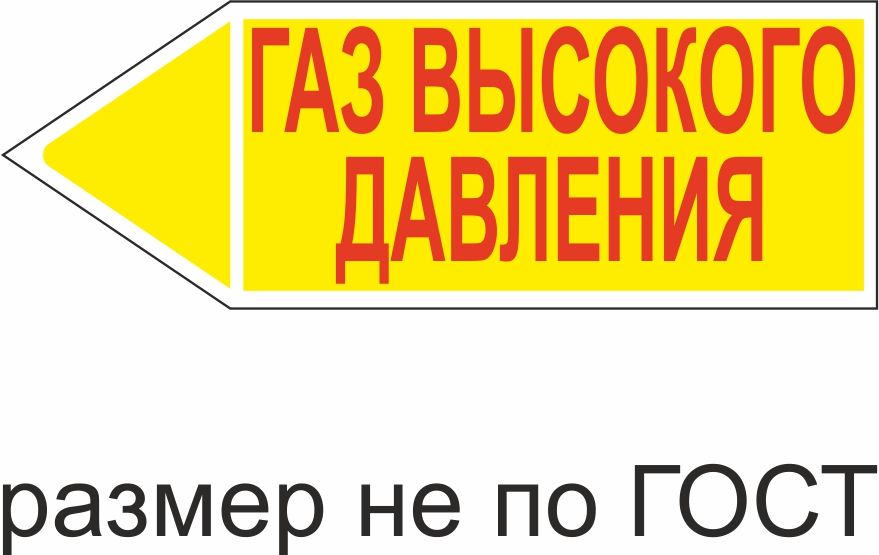 Маркер самоклеящийся Газ низкого давление 148х420 мм, фон желтый, буквы красные, налево