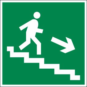 Знак E13 Направление к эвакуационному выходу по лестнице вниз, 200х200 мм, на пленке фотолюминесцентной второго типа самоклеящейся полимерной ГОСТ 12.4.026-2015