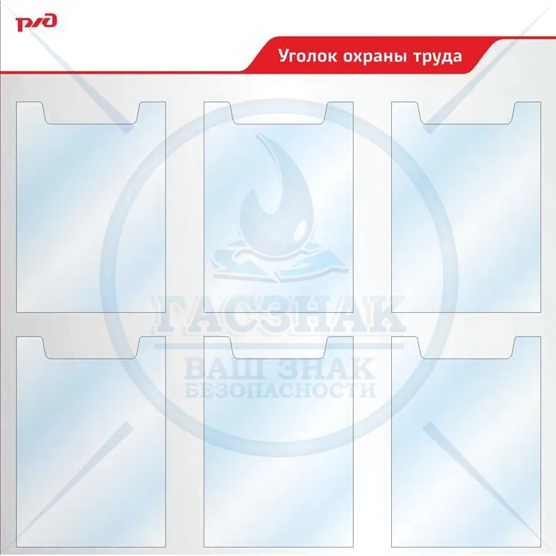 Стенды по охране труда для ОАО РЖД, пластиковый с алюминивым профилем, 5 объёмных карманов А4,1 карман А3 (Пластик ПВХ 4 мм; 1000х1000)