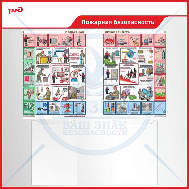 Стенд Охрана труда для ОАО РЖД, 7 карманов А4, перекидная система 10 рамок А4 (1400х1200; Пластик ПВХ 4 мм; Алюминиевый профиль)