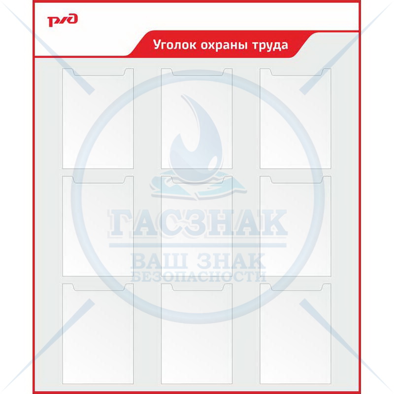 Стенд Информация РЖД, 6 карманов А4 пл., 1 карман А4 объемн., 1 карман 1-3 А4 объемный (1200х1200; Пластик ПВХ 4 мм, алюминиевый профиль; )