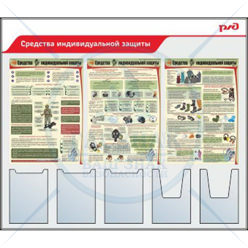 Стенд Уголок охраны труда (карман А4 плоск-5шт, объемн - 2 шт, перекидная система А4-10 рамок)(1400х1200Пластик ПВХ 4 мм, алюминиевый профиль;)
