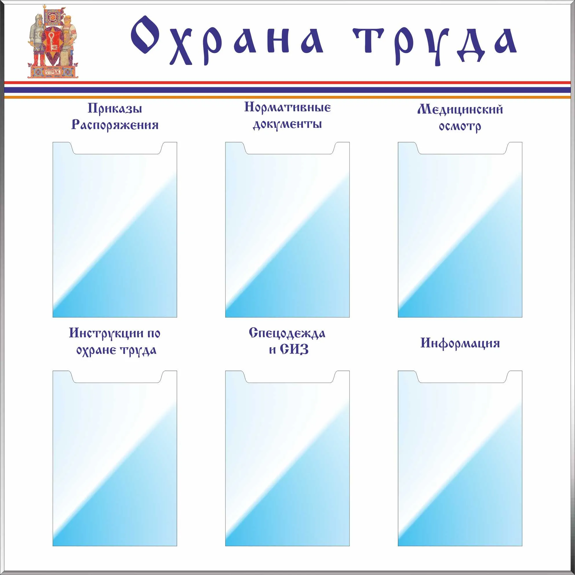 Стенд Охрана труда (Пластик ПВХ 4 мм, пластиковый профиль, 6 плоских кармана А4) (1000х1000; Пластик ПВХ 4 мм, пластиковый профиль; )