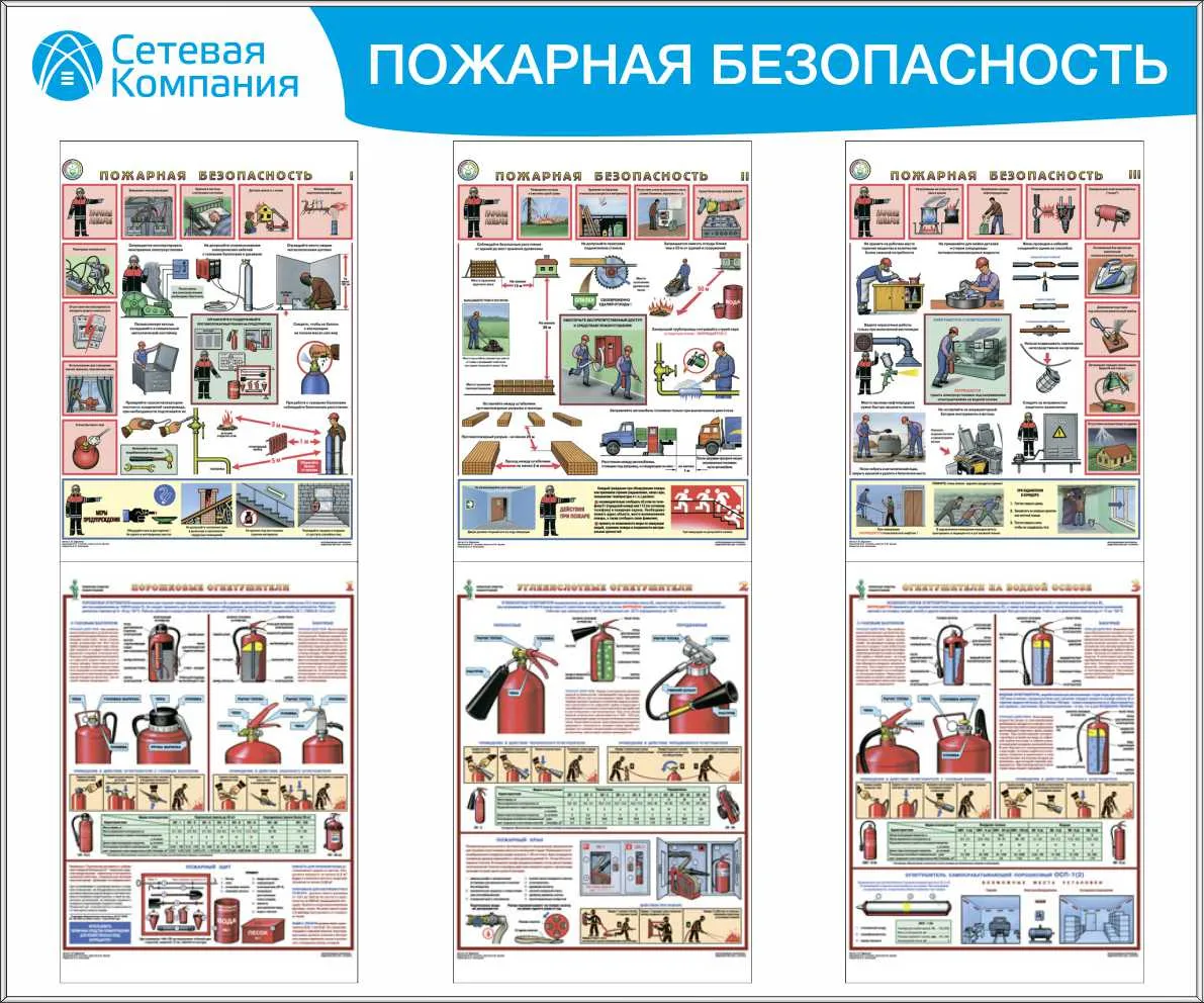 Стенд для ОТ пожарная безопасность, 6 плакатов А3 (1 200х1 000; Пластик ПВХ 4 мм, Алюминиевый профиль)