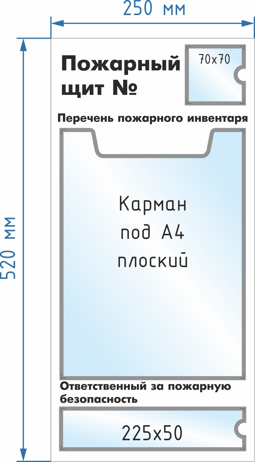 Пожарный щит № (карманы на скотче 70х70 -1шт., А4 вертик.плоский-1шт., 225х50 1 шт.)Код: ЦБ-00051748