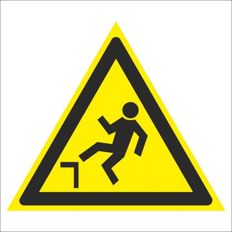 «Осторожно. Возможно падение с высоты» — знак, который устанавливается в целях предупреждения людей о существующем риске, для привлечения внимания к опасным участкам. Размещается непосредственно перед входом на подобные объекты и в других местах.Материалы и исполнение: