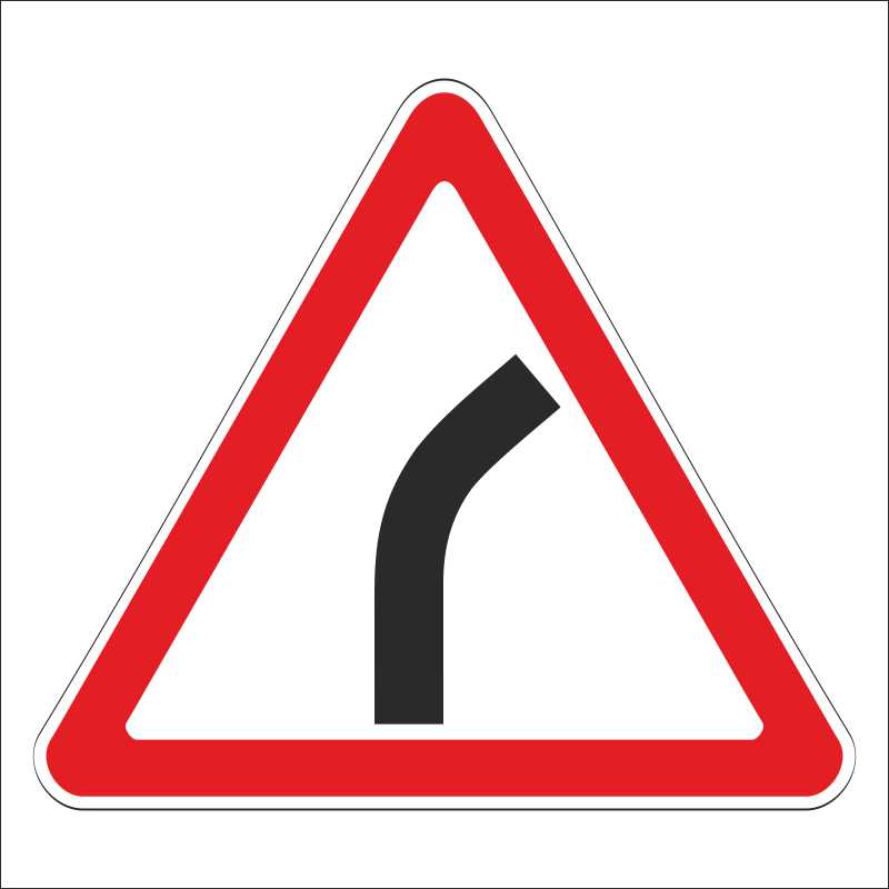 «Опасный поворот направо» предупреждает о том, что справа по дороге начинается участок с закруглением или с плохой видимостью. Устанавливается в городах, селах и деревнях за 50–100 м, а за пределами населенных пунктов — за 150–300 м от начала опасной зоны.