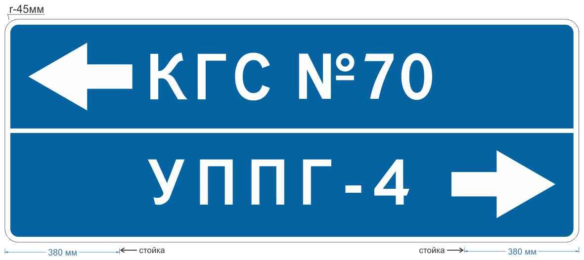 Знак индивидуального проектирования 6.10.1 "КГС № 70 (налево) УППГ-4 (направо)"