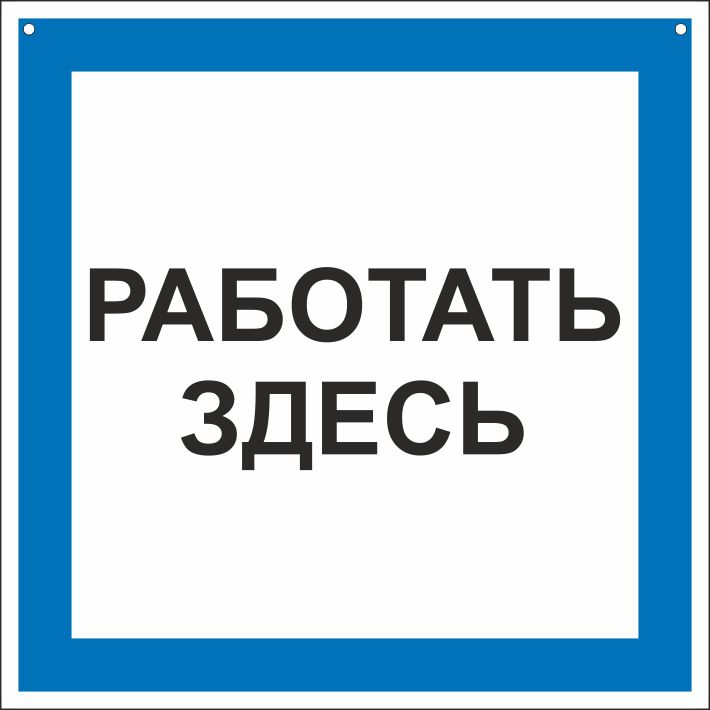 Плакат с отверстиями A11 Работать здесь, переносной с полиэфирным шнуром 250х250 (Пластик ПВХ 2 мм), СО 153-34.03.603-2003