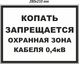 На нашем сайте можно купить Копать запрещается. Охранная зона кабеля 0,4кВ по доступной цене. Предусмотрена доставка заказов в Тольятти.