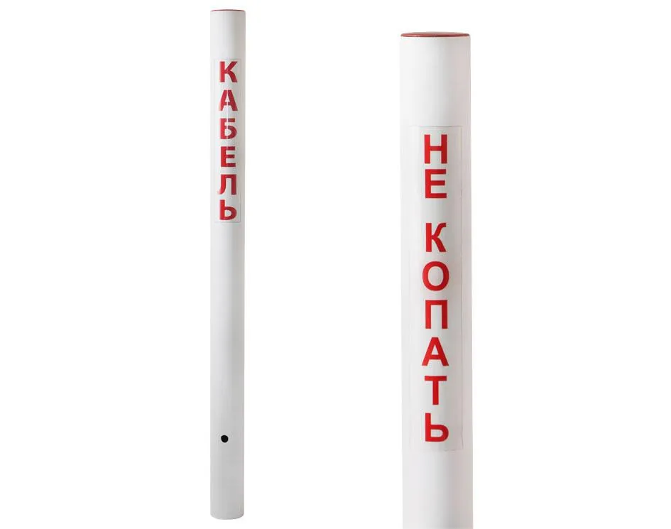 Замерный кабельный столбик СЗК с надписью КАБЕЛЬ/ НЕ КОПАТЬ используется для маркировки прохождения на загородных участках подземных трасс кабельных линий связи, оптоволокна, для отметки местоположения муфт, поворотов трассы кабеля и маркировки концов труб.