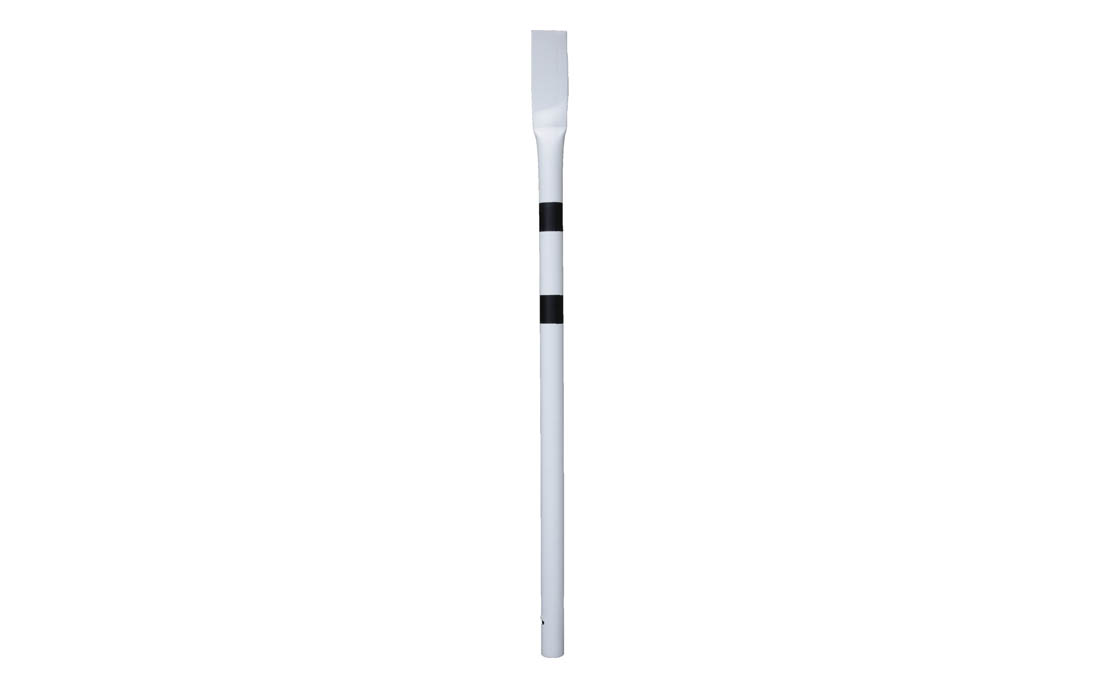 Столбики. Высота 2,5м Диаметр 83мм. Основной цвет белый. Две черные полоски. Две светоотражающие белые полоски. Без надписи